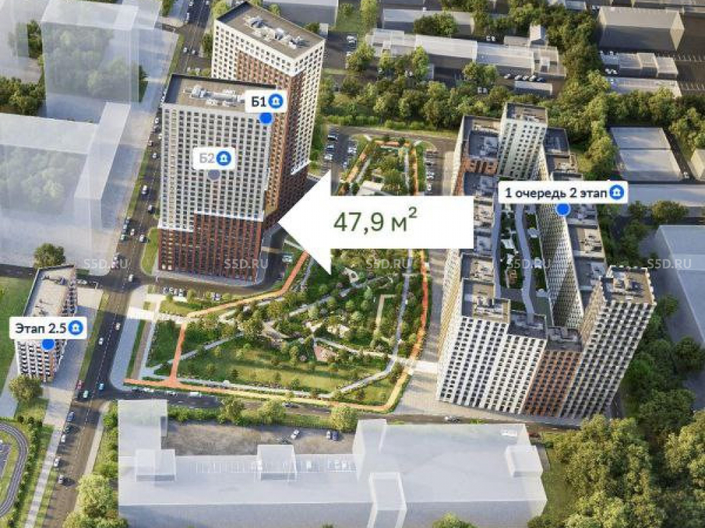 Общая площадь: 47,9 кв. м. Этаж: 1 (стилобатная часть). Отдельный вход с витриной, выходящей в сквер-парк — открытое игровое и прогулочное пространство. Открытая планировка. Высота потолков 6 м (позволяет создать антресольный уровень), 3 витринных окна (одно — на парк, два — на внутреннюю территорию). Электрическая мощность 9 кВт с возможностью увеличения.