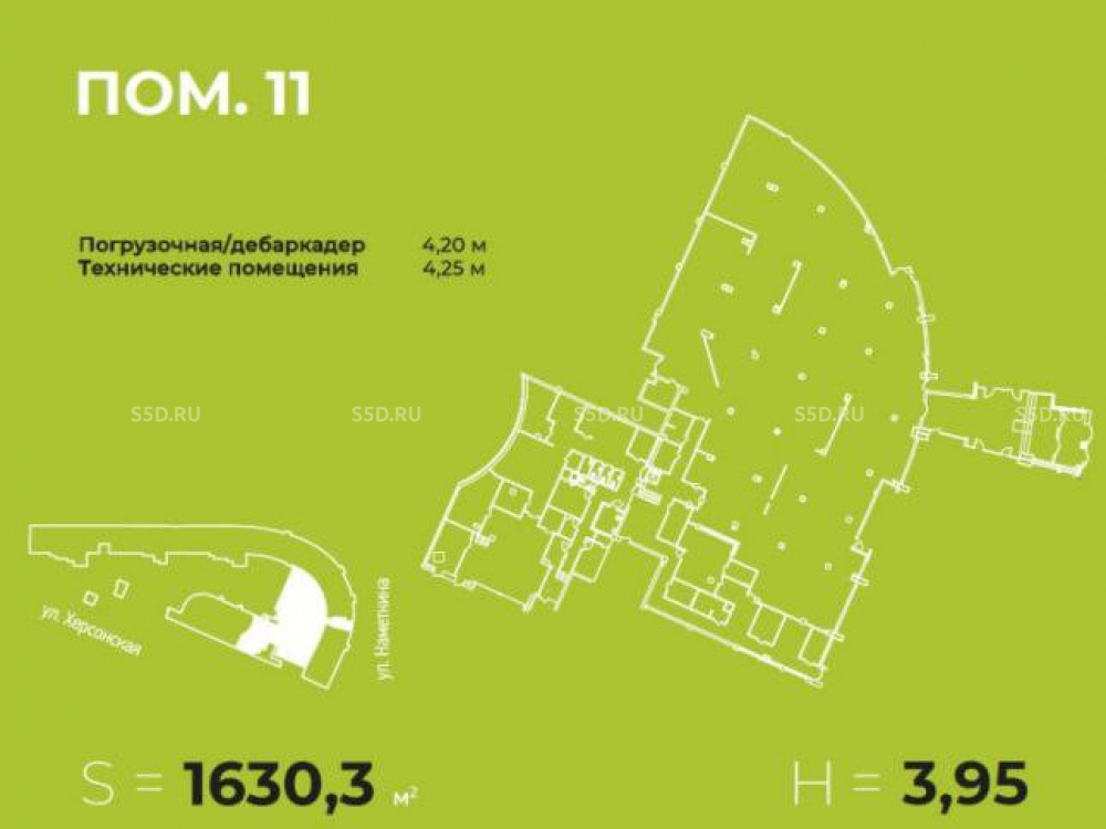 Общая площадь: 1630.3 кв. м. 1 этаж, отдельный вход. Панорамные витринные окна. Высокие потолки: 3,95 м. Планировка смешанная. Коммуникации: Электрическая мощность 30 кВт, санузел в блоке, выведена мокрая точка. Готовая система видеонаблюдения. Парковка: бесплатная наземная у дома, подземная (30 000 рублей/месяц) и городская (40 рублей/час).