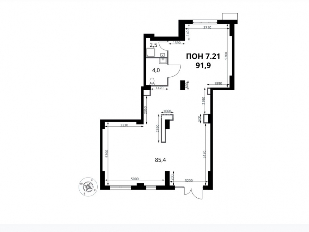 1-й этаж 26и этажного жилого дома, общая площадь - 91.96м2, отдельный вход, 3 витринных окон, помещение свободной планировки, правильной формы. Эл. мощность -0.2 кВт/м2. Все центральные коммуникации. Высота потолков: 4.8м. Отделка: Shell&Core - под отделку.
