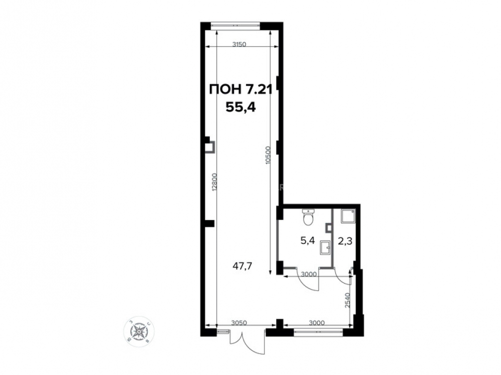 Площадь: 55.3 м2, назначение: свободное назначение, количество входов: 1 - на 1ю линию, количество этажей в помещении: 1, высота потолков: 4.1м (возможна организация антресоли), витринное остекление. Выделенная мощность: 11 кВт, Вентиляция: 200x200; Ш100; Нагрузка на пол: 800 кг/м²