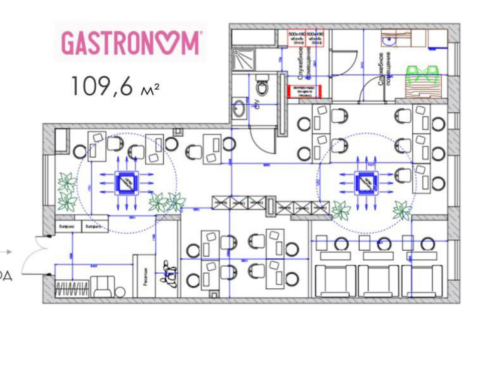 помещение на 1-м этаже 11-ти этажного жилого дома площадью 109.6 м2 , свободная планировка. Высота потолков 4 м, электроэнергия - 20 кВт.