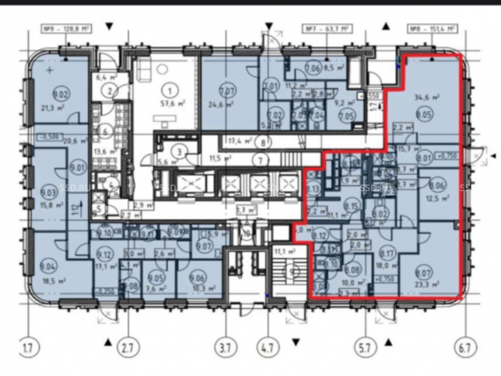 Общая площадь: 151.4 м2