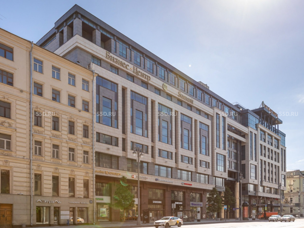 1-й этаж бизнес-центра класса А. Общая площадь - 831 м2. Отдельный вход с Тверской улицы. Открытая свободная планировка. Панорамное остекление. Высота потолков 4.3 м. Типовой ремонт. Возможность размещения вывески. Все центральные коммуникации.