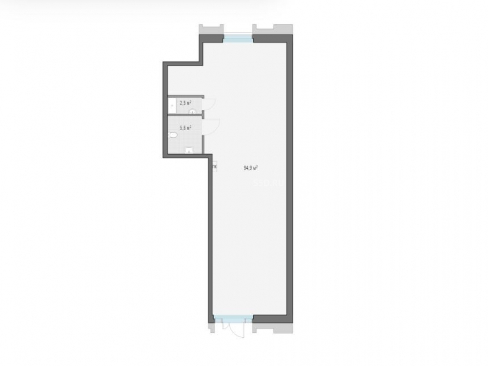 помещение на первом этаже жилого дома площадью 103 м2 с отдельным входом, витринное остекление, электр. мощность 20,05 кВт., потолки 6,05 м, мокрая точка. Срок сдачи - 1 кв 2027 г