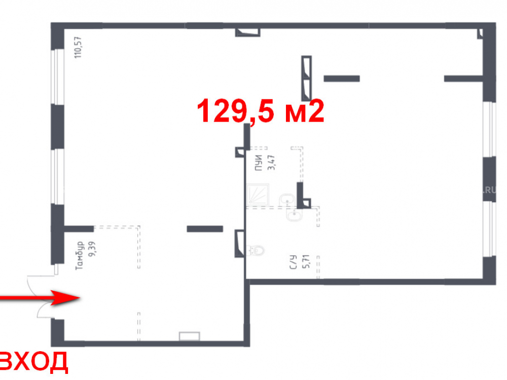 Общая площадь: 129 м2