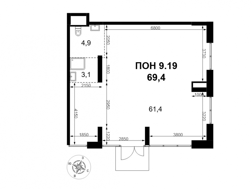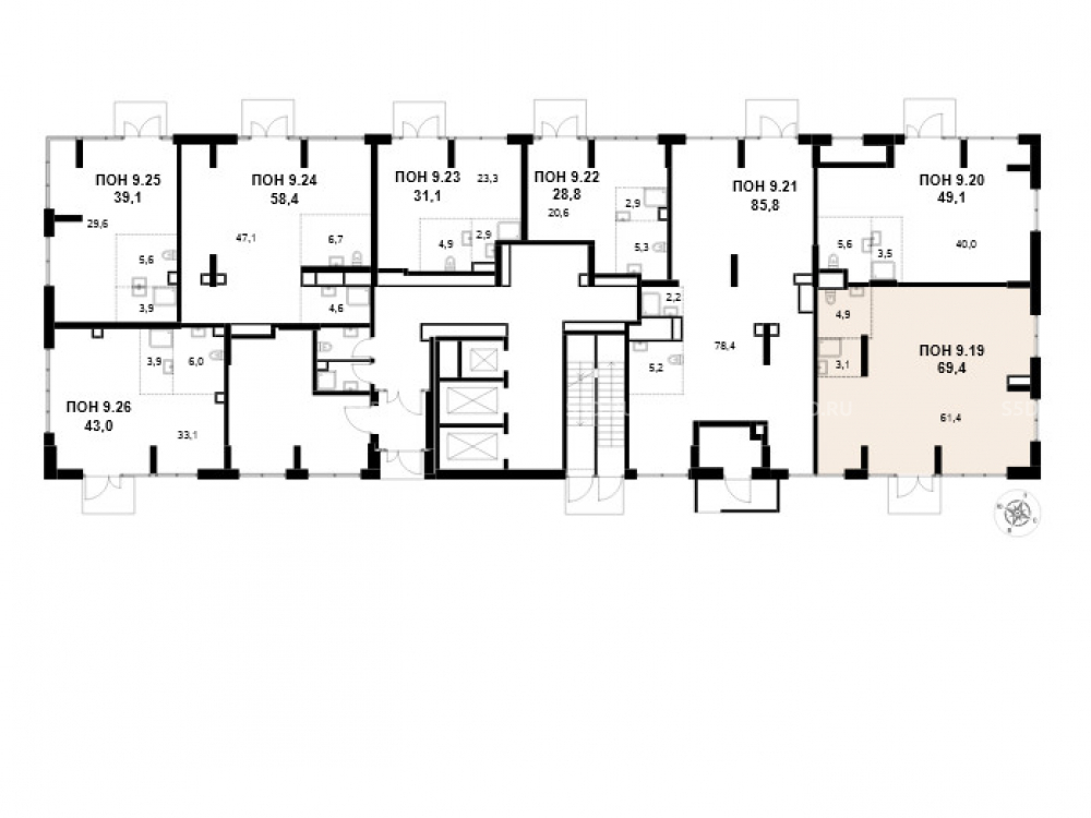 Помещение на 1 этаже 25и этажного корпуса, общей площадью 69.4м2, отдельный вход, Эл. мощность 0.2 кВт на м2, высота потолков: 4.6м2, отделка: Shell&core, открытая планировка. Витринные окна.
