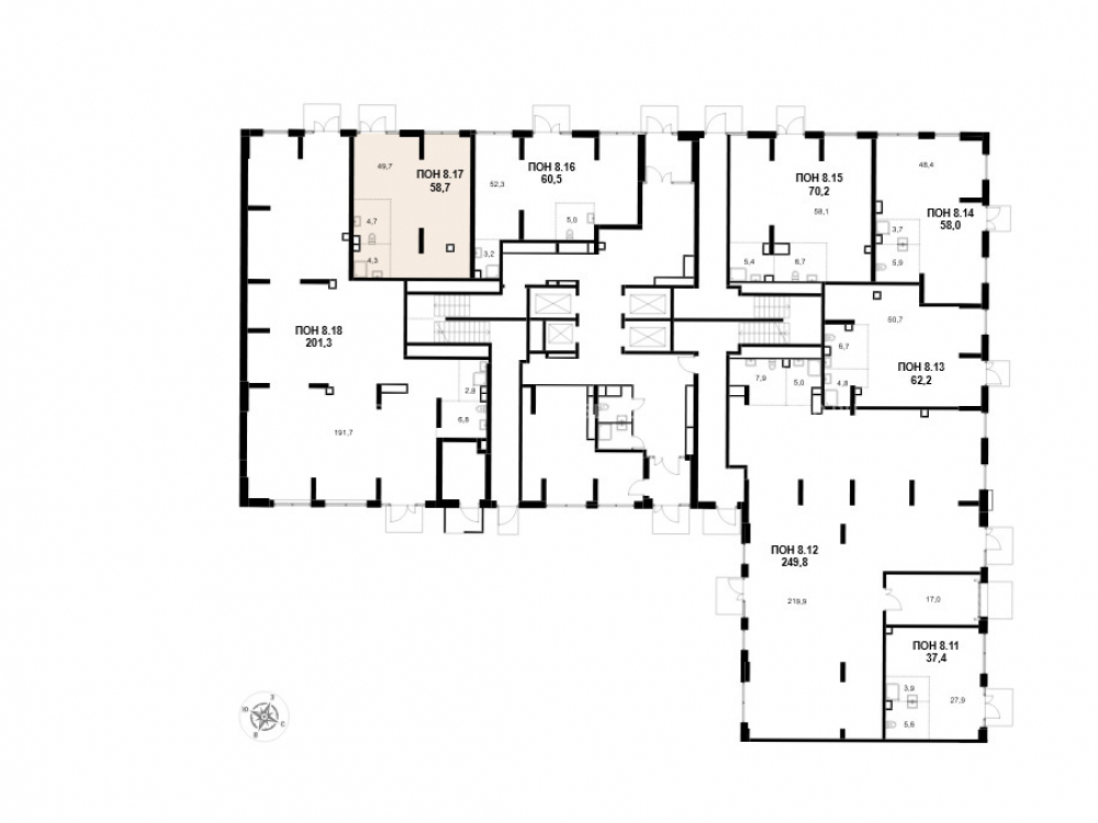 Помещение на 1 этаже 32х этажного корпуса, общей площадью 58.7м2, отдельный вход, Эл. мощность 0.2 кВт на м2, высота потолков: 4.6м2, отделка: Shell&core, открытая планировка. Витринные окна.