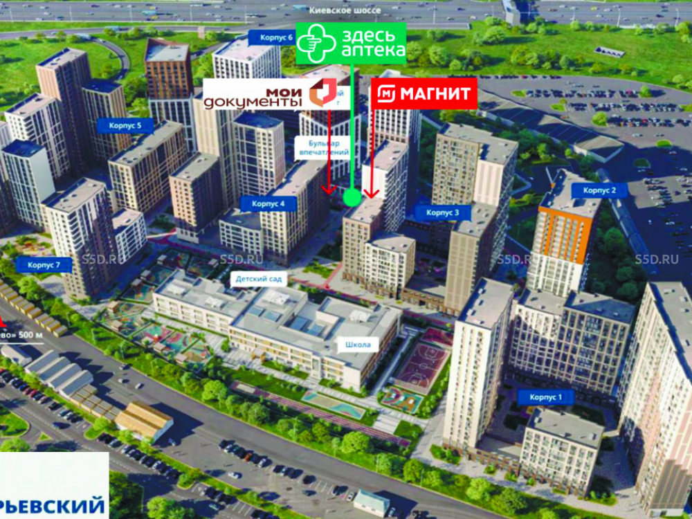 Москва, пос. Московский, квартал 70 корпус 6, ЖК «1-й Саларьевский» корпус 2 - 67,8 м2 / АБ Здесь Аптека