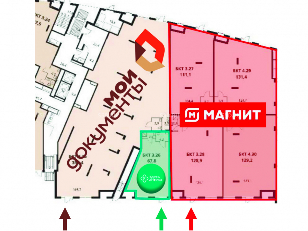 Общий МАП: 350 000 RUB (данный МАП является минимальным, при оптимизации арендаторов арендный поток можно значительно увеличить)