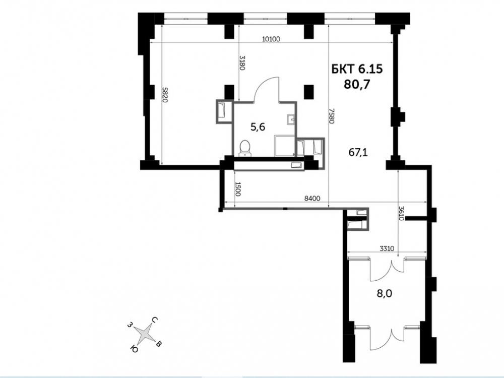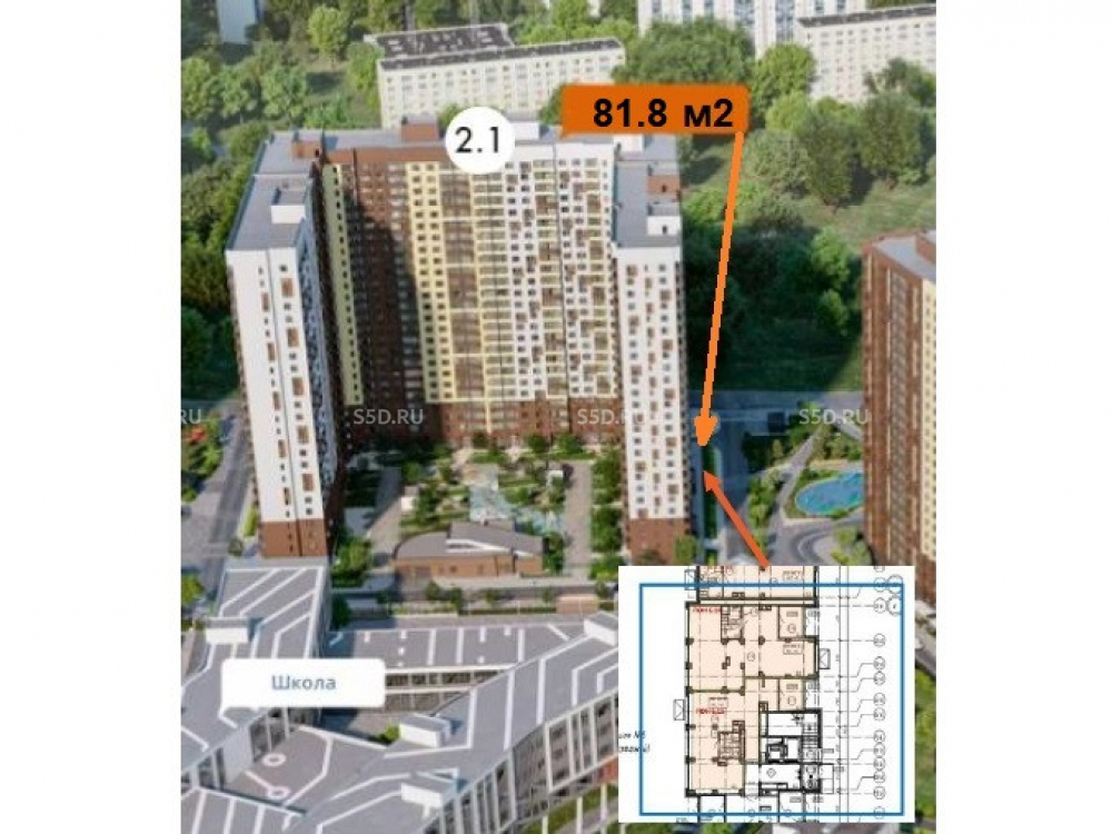 Общая площадь: 81.8 м2