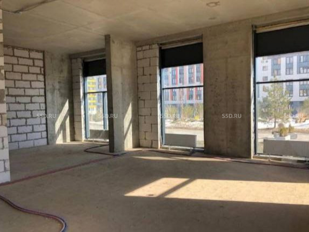 Общая площадь: 87 кв. м. 1-й этаж, угловое положение. Зальная планировка без перегородок для свободного зонирования. Отдельный вход с улицы и витринные окна. Офисная отделка (стяжка, штукатурка, электрика). Высота потолков — 3 м. Электрическая мощность — 25 кВт. Центральное отопление. Территория ЖК: Видеонаблюдение, прогулочные аллеи, подземная парковка.