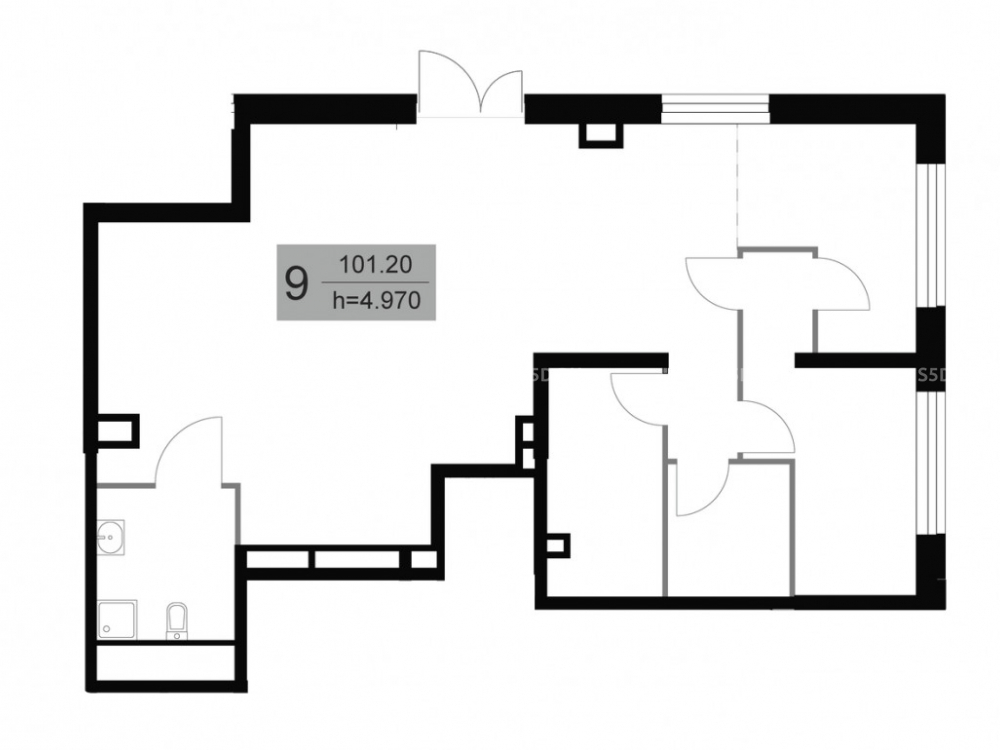 Высота потолков: 4.87 м.