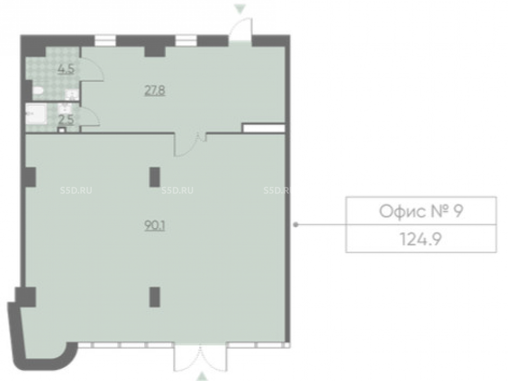 Общая площадь - 124.9м2, Электрическая мощность - 25кВт, Высота потолка - 5м. Отдельный вход