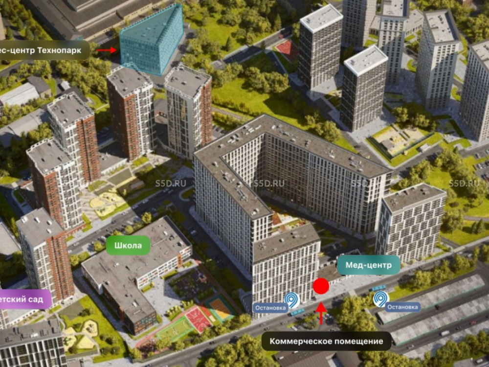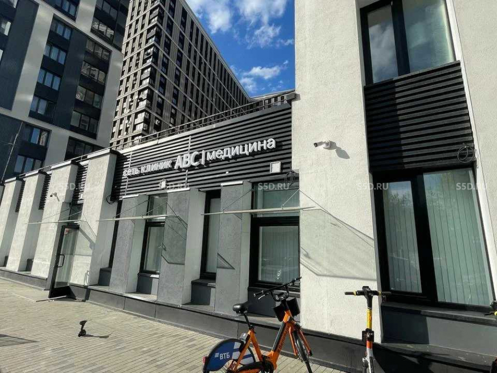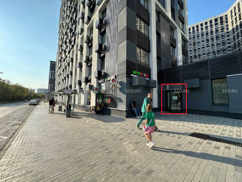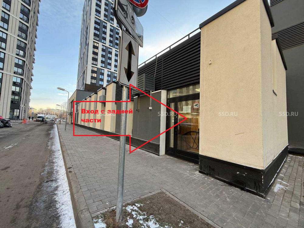 с подземными паркингами, наземными гостевыми автостоянками, бизнес-центром, детскими садами, школой, поликлиникой, благоустроенной территорией с игровыми и спортивными площадками и другими инфраструктурными объектами. В 15 мин пешком находится метро Октябрьское поле. Рядом и напротив помещения находятся автобусные остановки. Более 5 700 квартир в радиусе 500 м. Высокий пешеходный трафик 863 чел./час. Высокий автомобильный трафик 636 авто/час.