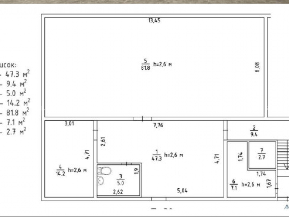 -Площадь помещения: 167,5 м².
