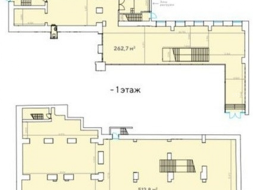 Площадь 1 этажа - 262,7 м2; -1 этаж - 512,8 м2
