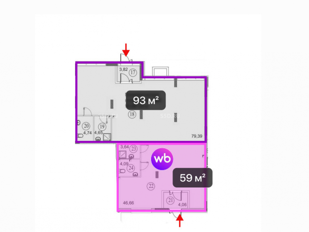 Арендатор 59 кв. м. - WB на 5 лет, индексация безусловная 7%. МАП 164 200 рублей.