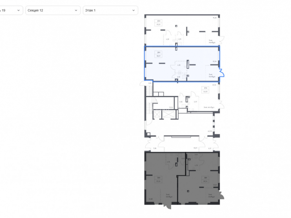 Площадь 90.2 м²., отдельный вход, высота потолков 3.2 м. - 6.2 м., витринное остекление. Мощность электричества 16.23 кВт.