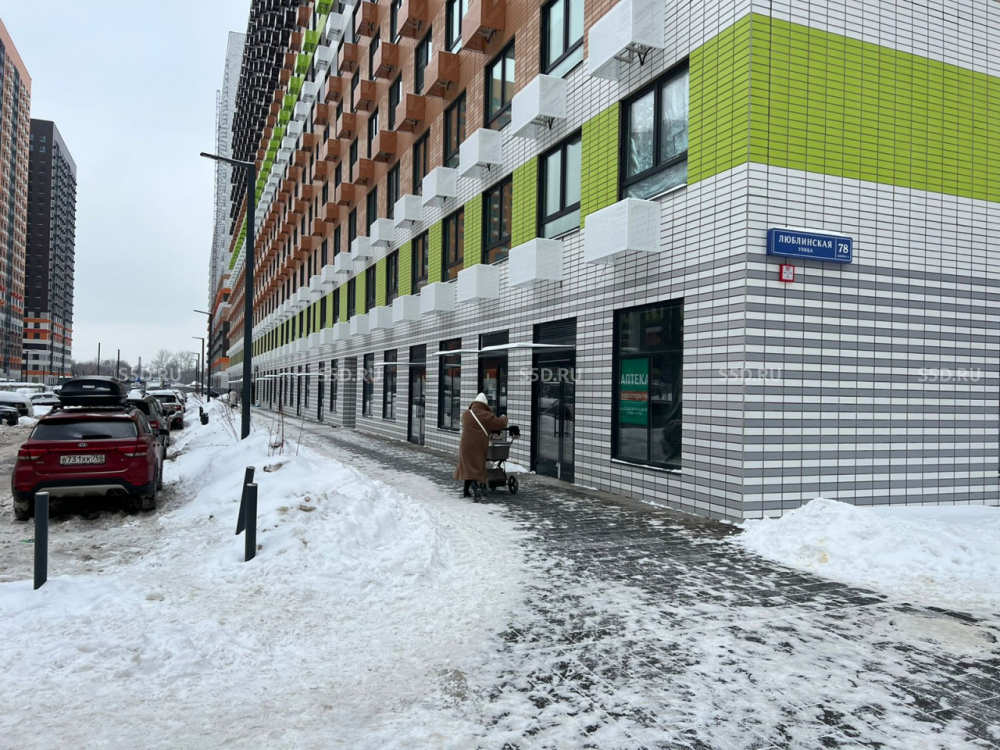 Помещение расположено в новом ЖК "Люблинский парк", помещение напротив магазина Пятерочка, высокий трафик и возможности для рекламы, огромное количество жителей, обжитый район.