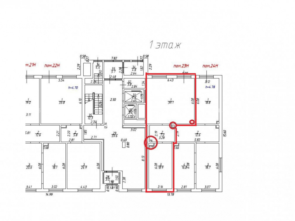 Мокрая точка 1 шт. Высота потолков 4,2 метра.