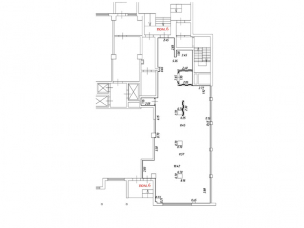 Технические характеристики: общая площадь 189,5 кв.м. • первый этаж жилого 25 этажного дома • электроэнергия 60 кВт. • высота потолков 4 м. • два отдельных входа со стороны фасада и улицы и со двора • отделка • все центральные коммуникации • зальная планировка.