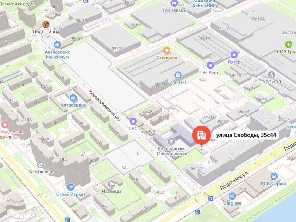 Адрес: г. Москва, СЗАО, улица Свободы, 35с44. Отличная транспортная доступность: до МКАД — 10 мин. на авто, до ТТК — 22 мин. В шаговой доступности станции метро «Сходненская» (22 мин. пешком) и «Тушинская» (30 мин.).