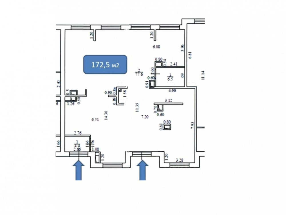 Помещение состоит из двух paздельных помещений 84 м2 и 88,5 м2 c отдельными входами объединенных в единый торговый зал.