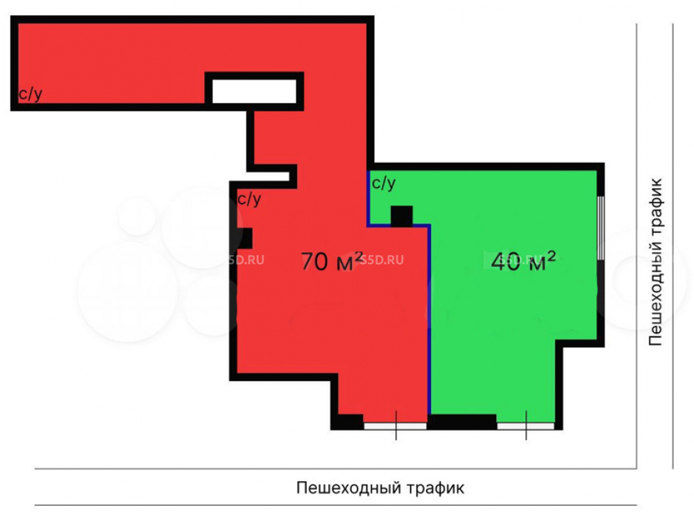 Предлагается в аренду помещение свободного назначения по адресу: Москва, САО, р-н Западное Дегунино, ул. Базовская, д. 26, площадью 110 кв.м. с возможностью дробления площади на 2 отдельные - 40 и 70 кв.м.
