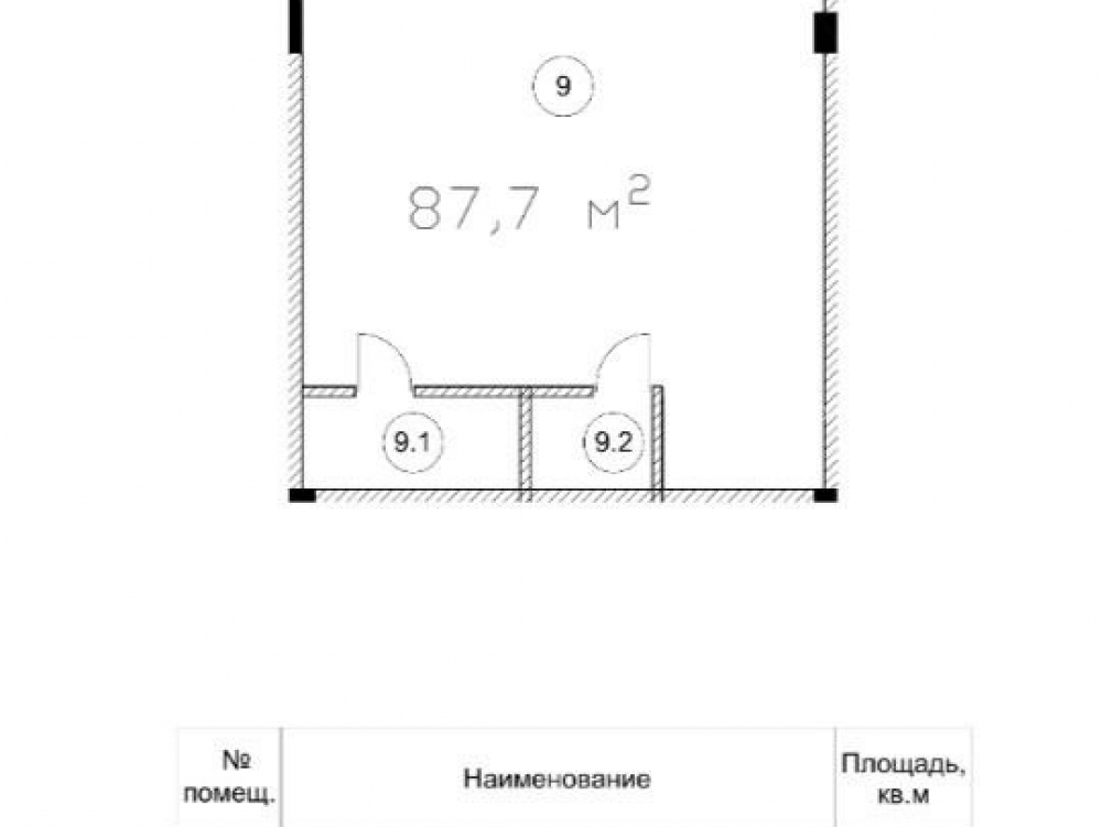 Общая площадь: 87,7 м² (помещение №9). 1 этаж.