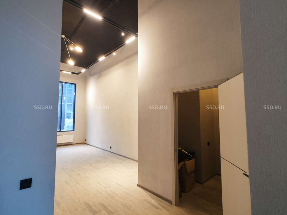 Общая площадь помещения 75 м2. 1-й этаж жилого дома. Вход с 1й линии, расположено непосредственно рядом с въездом в подземный паркинг и главным входом во внутреннюю дворовую территорию двух корпусов ЖК, отличная визуализация с главной улицы ЖК. Витринное остекление. Высота потолков 5.4 м. - возможность увеличения полезной площади через сооружение антресоли. Эл. мощность 15 кВт. Все центральные коммуникации. Состояние помещения - сделан полный офисный ремонт. Парковка перед фасадом.