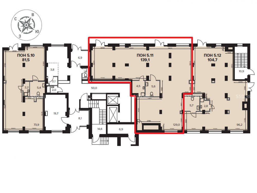 Общая площадь: 139.1 м2