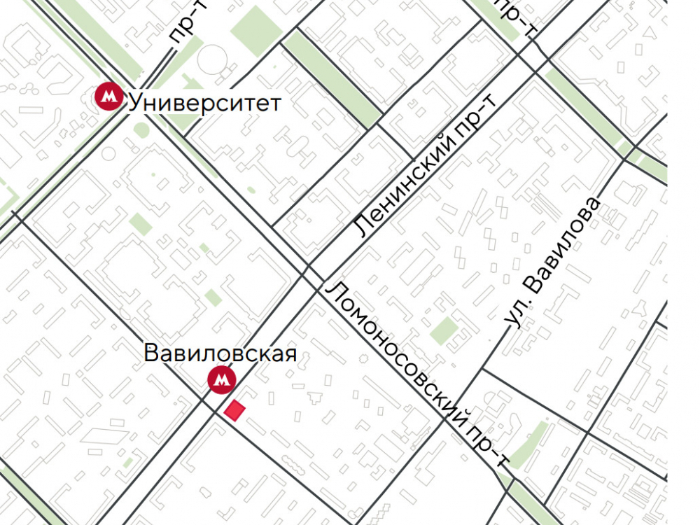 Станция метро Вавиловская - 1 мин пешком, метро Университет - 10 минут пешком.