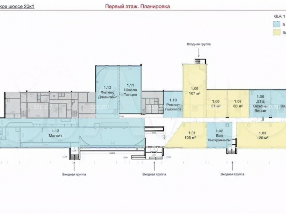 Площадь: 704 м² (1 этаж).