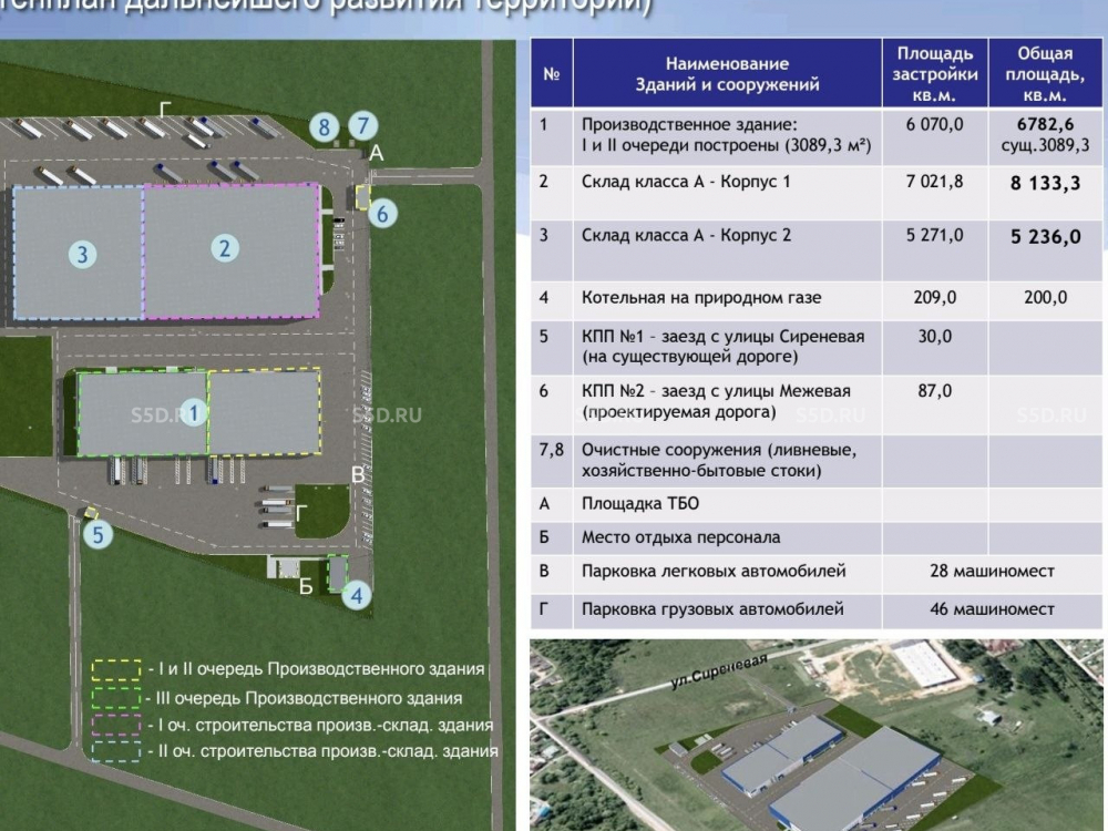 Производственное здание: 3 089,3 м², введено в эксплуатацию.