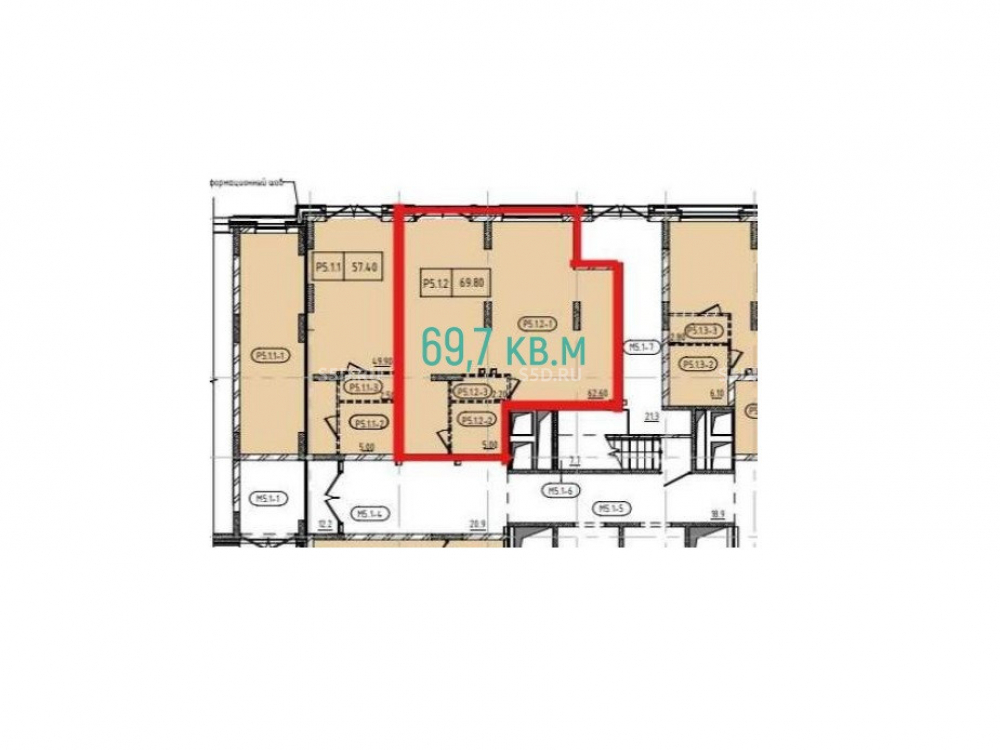 Общая площадь: 69.7 м2