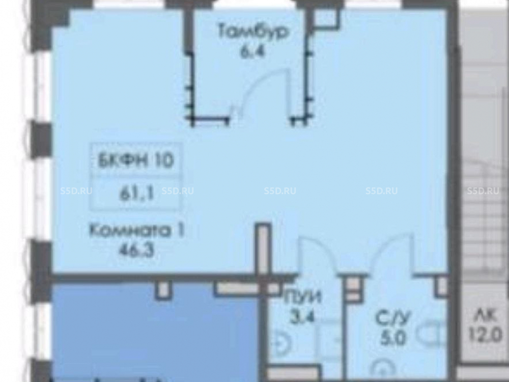 Общая площадь: 61,1 кв. м. (1 этаж).