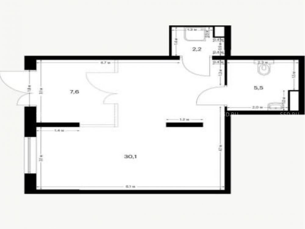 Общая площадь: 45.4 м2
