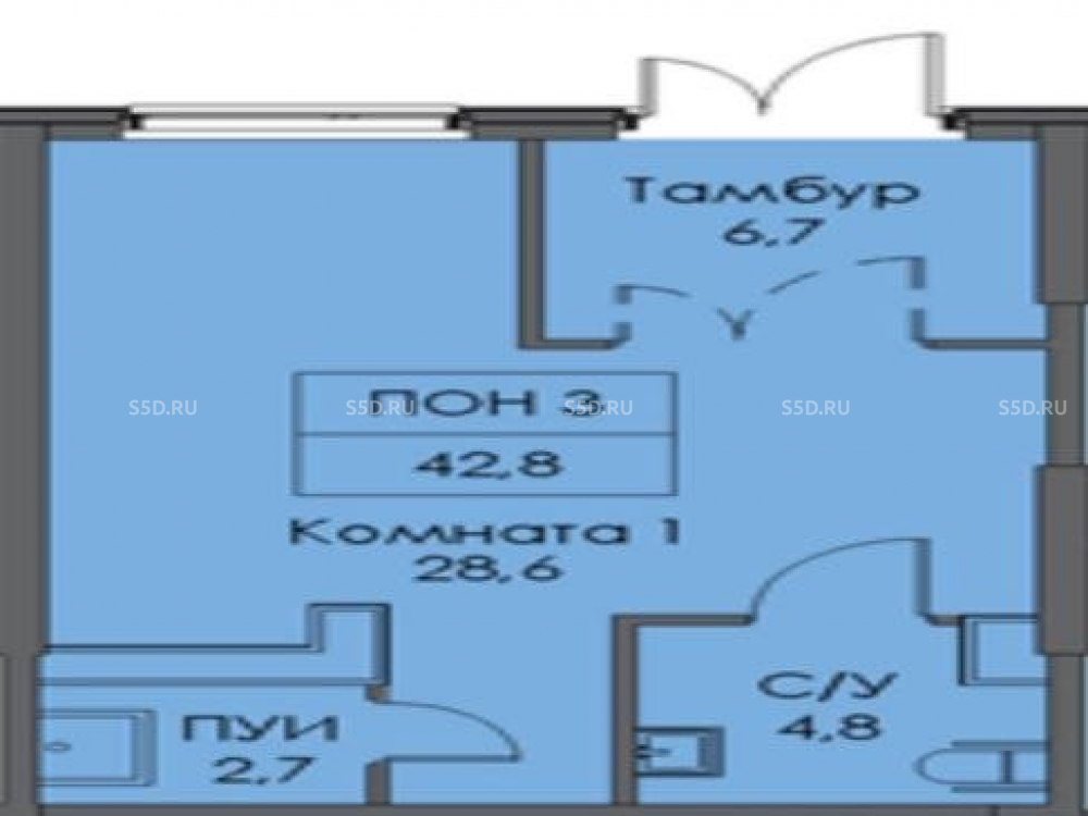 Общая площадь: 43 м2