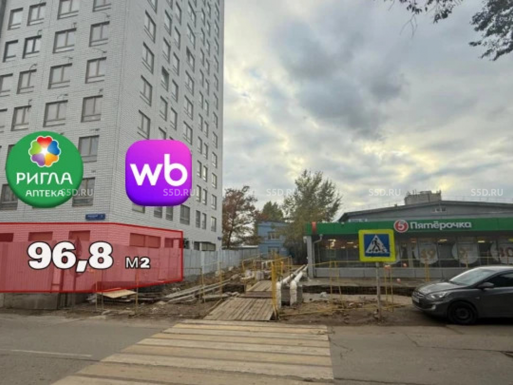 Площадь: 96,8 м² (угловое помещение, 1 этаж).