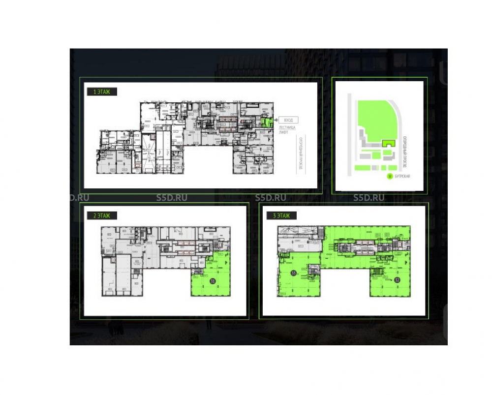 Располагается на 2 и 3 этажах в башне Атлас и выходит на главную и активную улицу - Огородный проезд.