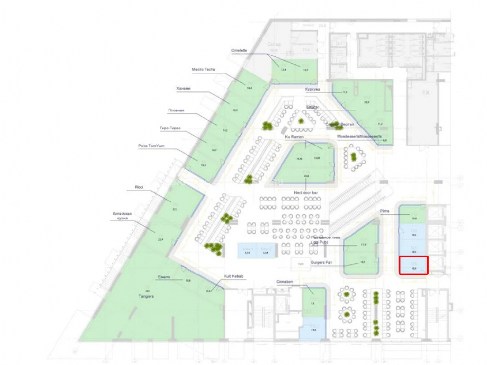 Предлагается в аренду площадь под размещение общепита в зоне фудхолла Kitchen Garden TECHNOPARK по адресу: г. Москва, м. Технопарк, проспект Андропова д. 10. Фудхолл расположен на 2 этаже бизнес-центра Technopark Plaza. Площадь павильона составляет 10,8 кв.