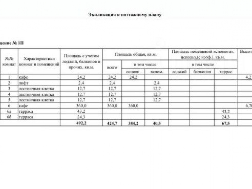 Технические характеристики: общая площадь: 492.2м2: (373м2 основная площадь, терраса №1 - 43.2м2, терраса №2 - 24.3м2, зона погрузки-разгрузки - 24.2м2 и лестничные марши)