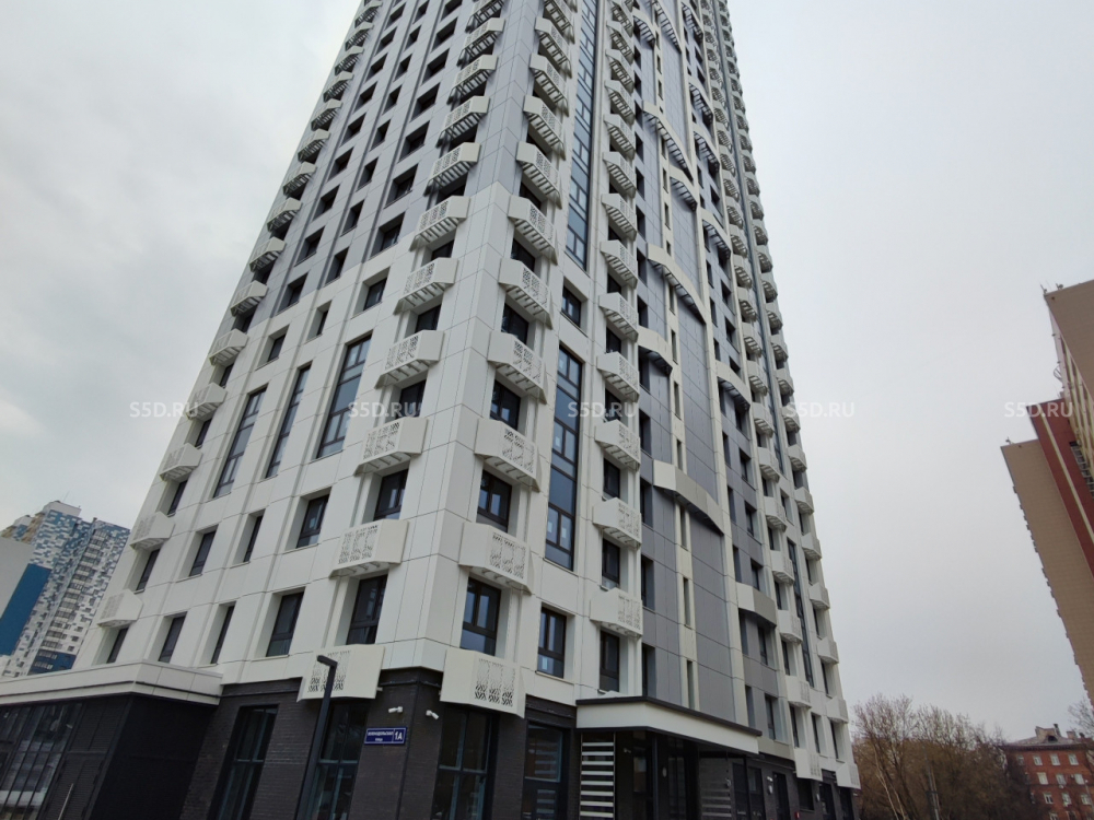 Технические характеристики: общая площадь 105 м2, располагается на 1 этаже 23-х этажного жилого дома 2025 года постройки, открытая планировка, высота потолка — 4.5 м, витринные окна на две стороны.