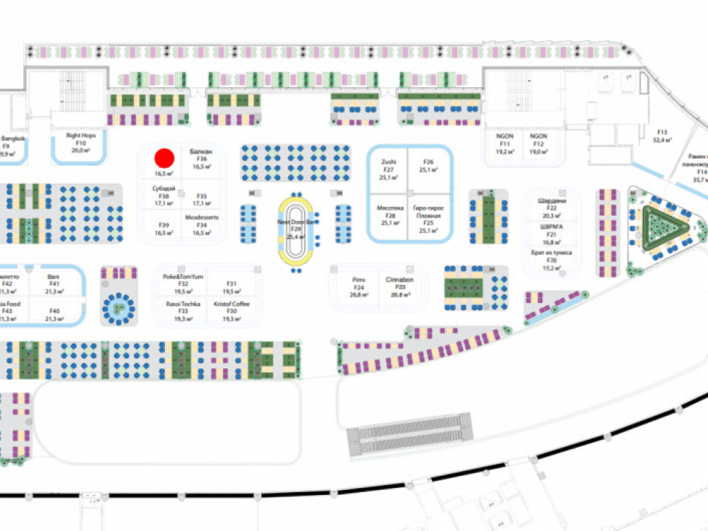 Торговое окружение: Кухни мира, мармелад, бутики одежды, спортивное питание