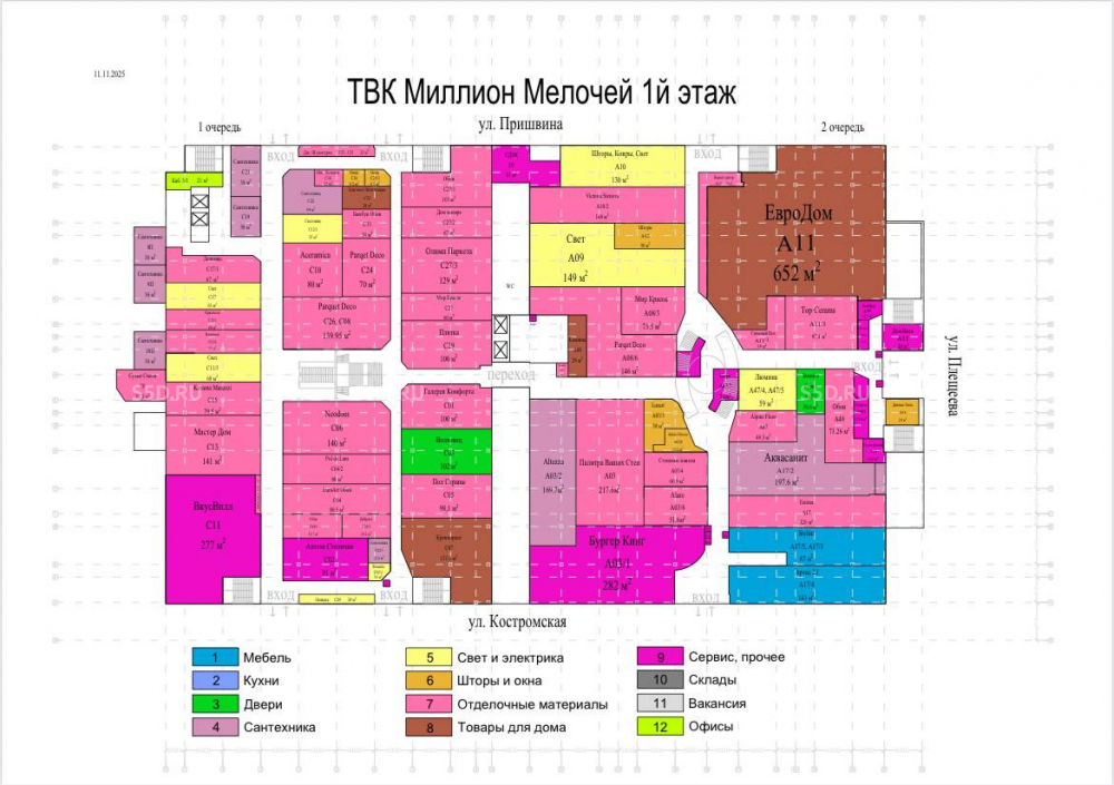 В торгово-выставочном комплексе представлены различные группы товаров включая, но не ограничиваясь, отделочные материалы, сантехнику, свет, интерьеры, товары для дома, двери, мебель и сопутствующие товары, бытовую технику, электронику и прочие товары.