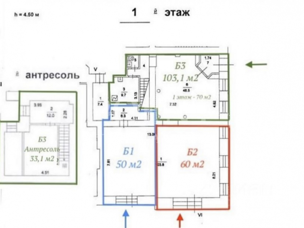 Площадь - 54.8 кв.м. расположена на первом этаже 3-х этажного НЕЖИЛОГО дома. Высота потолков - 4.5 м. Электрическая мощность - 15 кВт.
