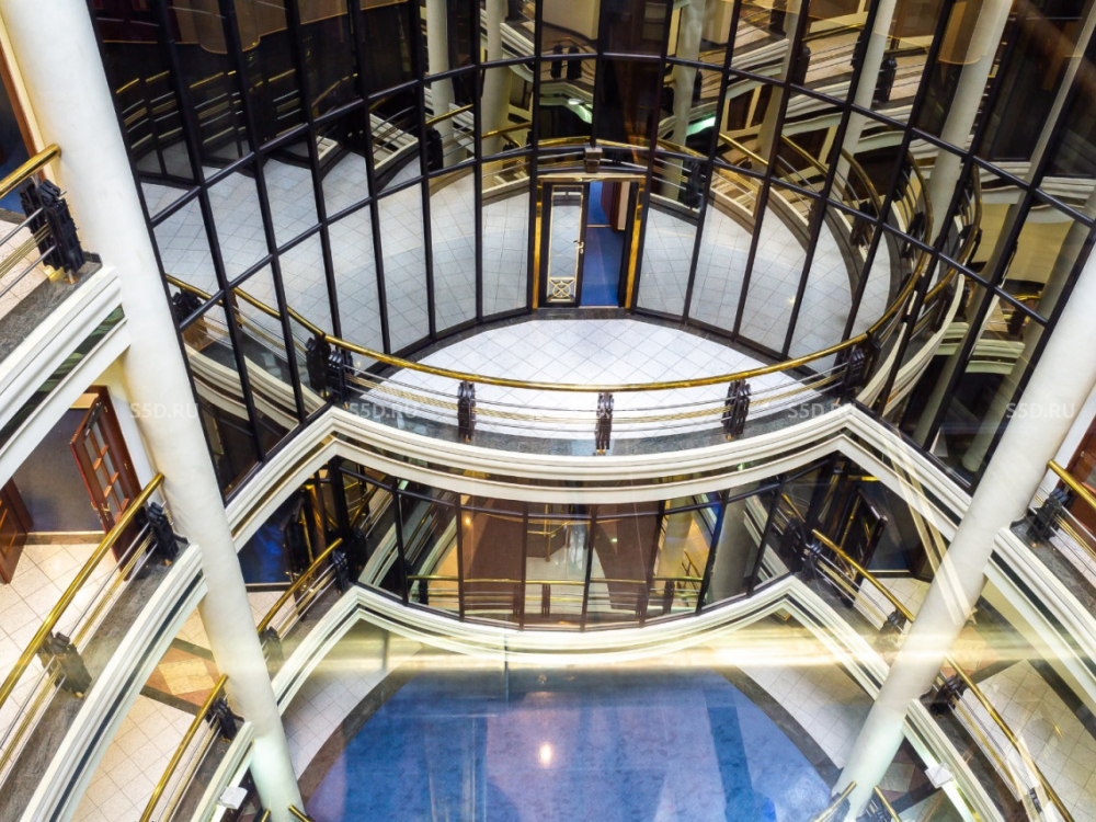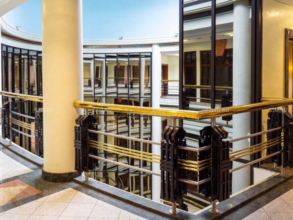 Здание обладает представительским лобби и просторным атриумом с панорамными лифтами.