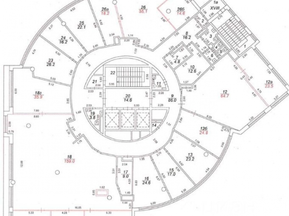 Планировка: смешанная (open space, кабинеты, переговорные, VIP-офисы с апартаментами, площадь типового этажа 750 м2 (делится на 2 крыла по 375 м2 с круговым коридором на этаже). Ремонт. Ресторан Черетто и кофейня.