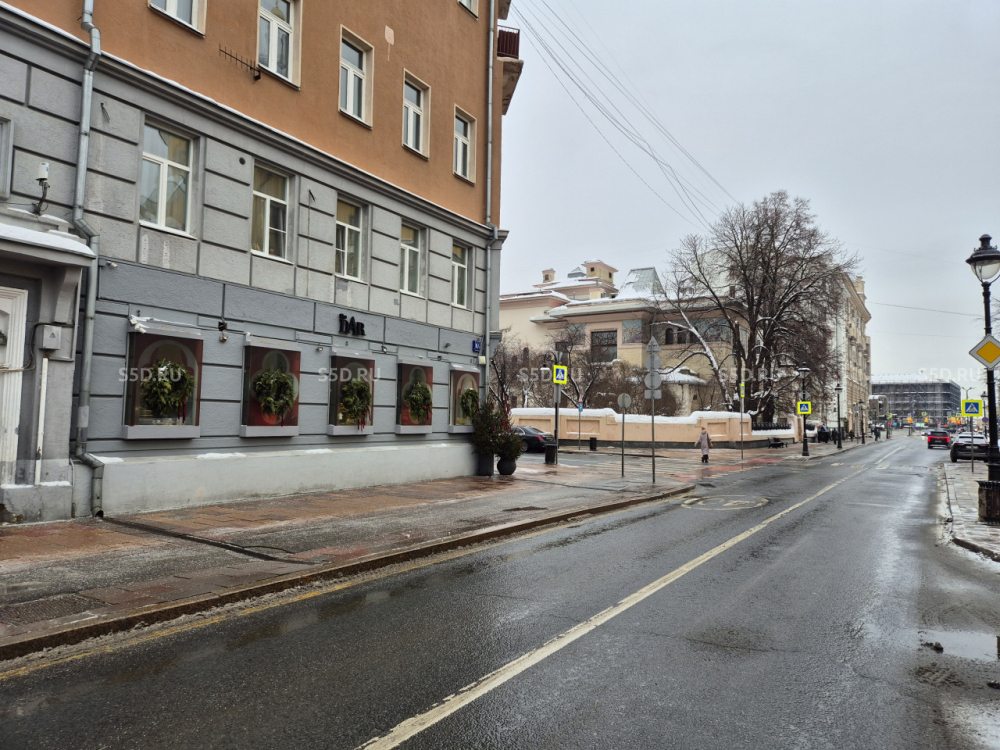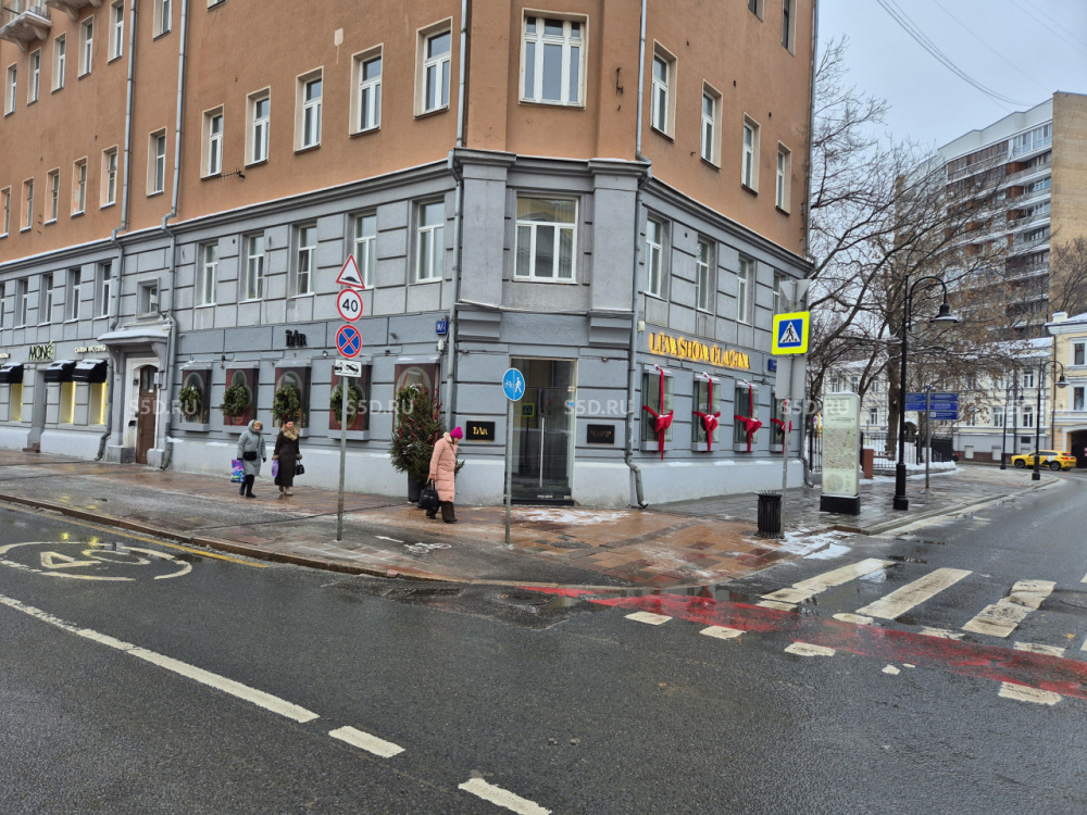 Помещение расположено на пересечении ул. Малая Никитская и ул. Спиридоновка - угловое помещение на первом этаже 6-этажного жилого дома 1908 года постройки. Умеренный постоянный трафик, хорошая визуализация, высокий рекламный потенциал.