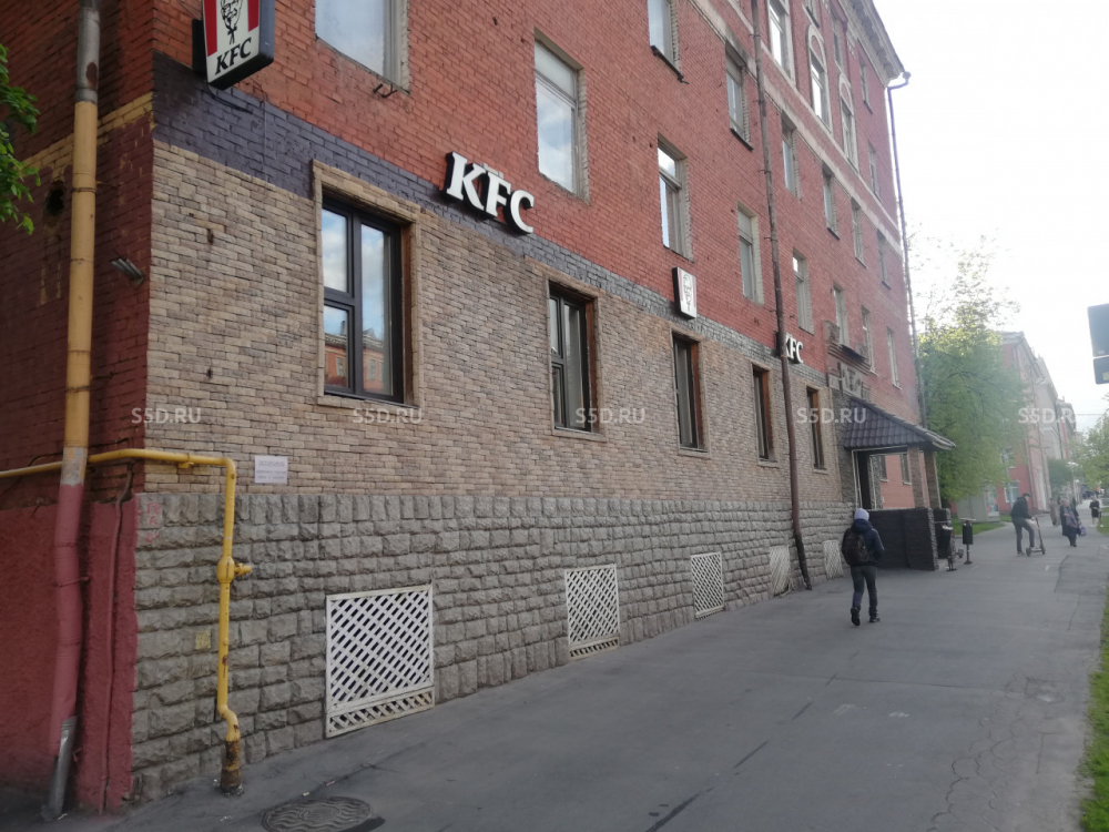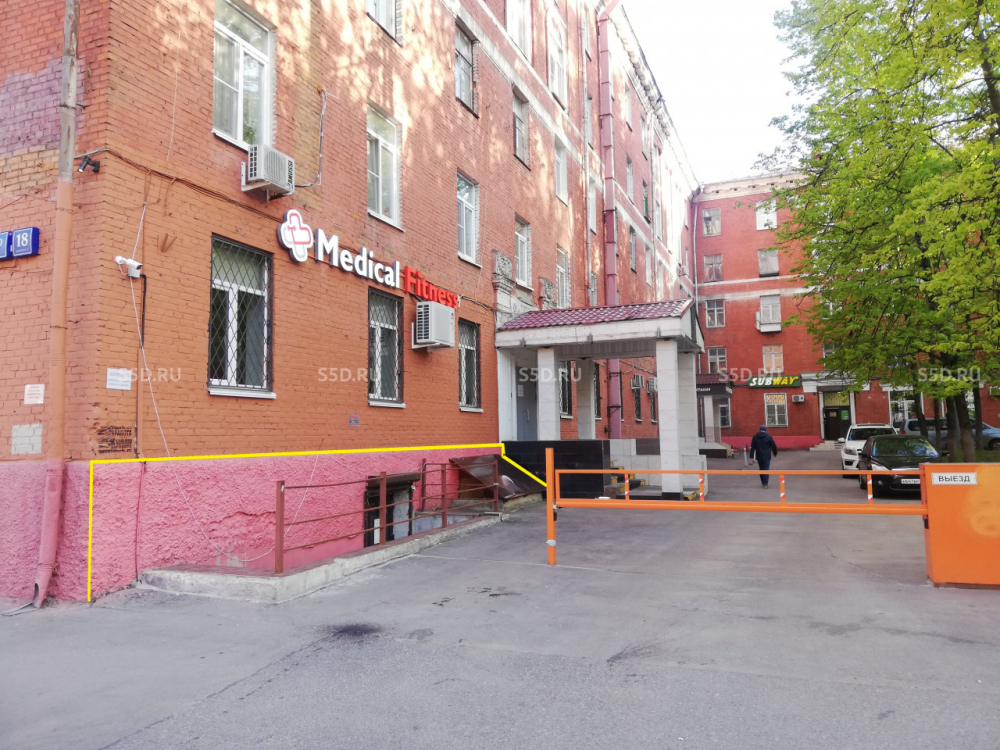 Помещение расположено на цокольном этаже (3 ступени) с отдельным входом в 5-ти этажном видовом жилом доме 1955 года постройки, с очень оживленным автомобильным и пешеходным трафиком.